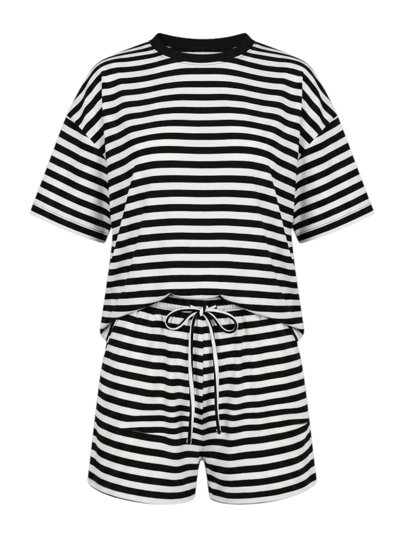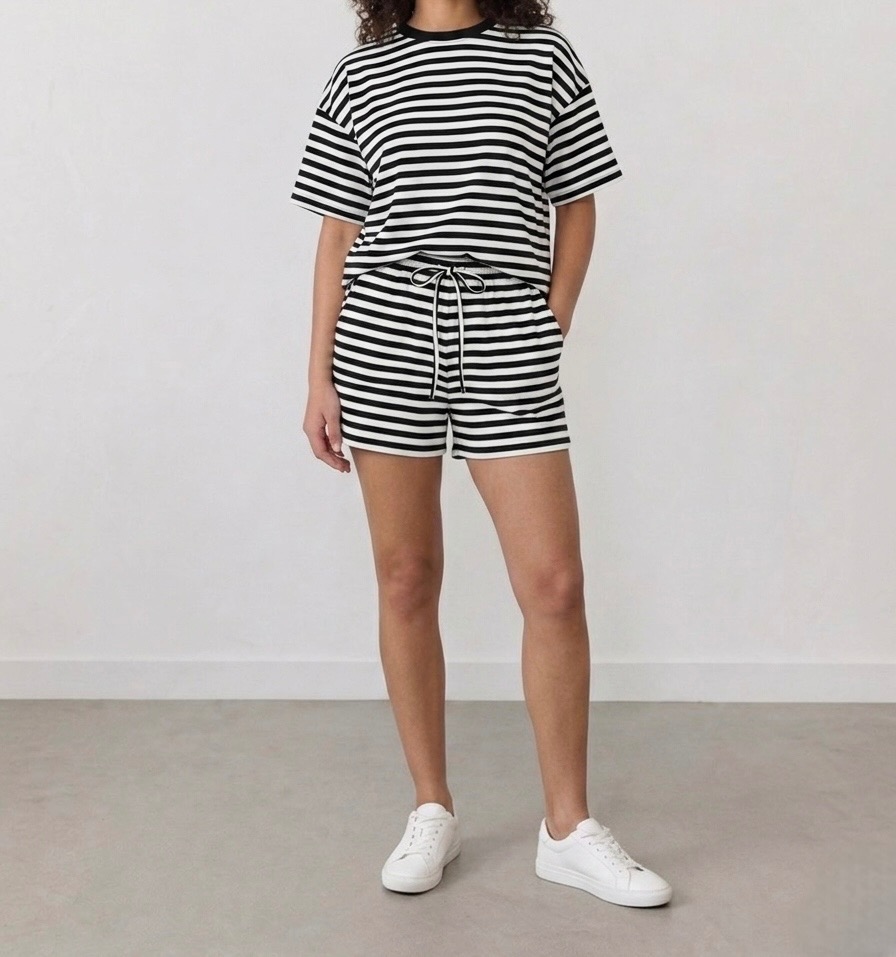 Deze set zwart wit gestreept is een tijdloze basic die je eindeloos kunt combineren.