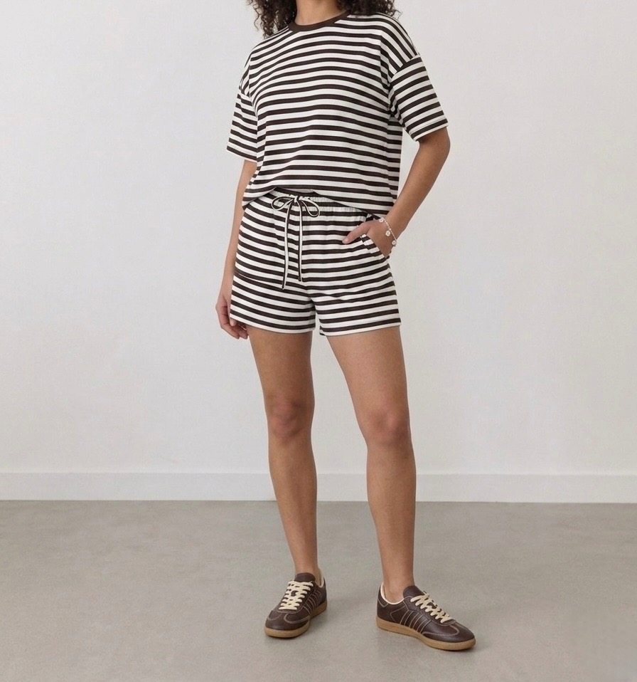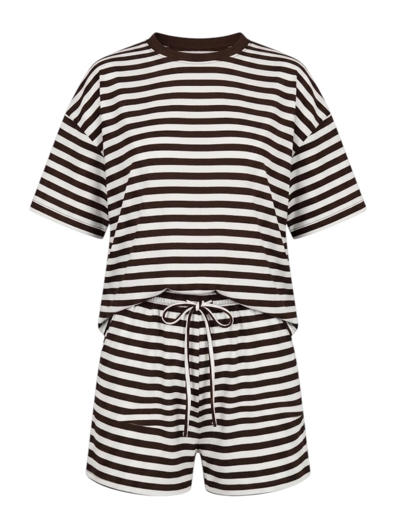 Deze set donkerbruin wit gestreept is een echte musthave.