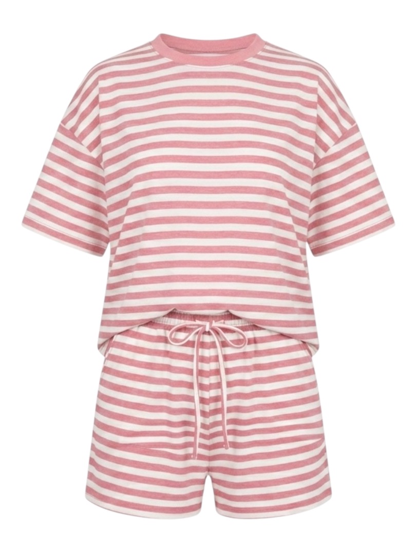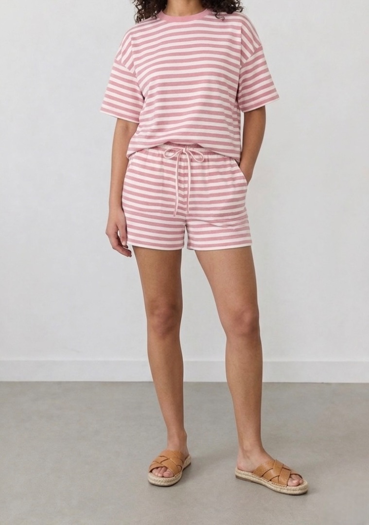 Deze set roze wit gestreept geeft jouw outfit meteen een frisse en vrouwelijke uitstraling.