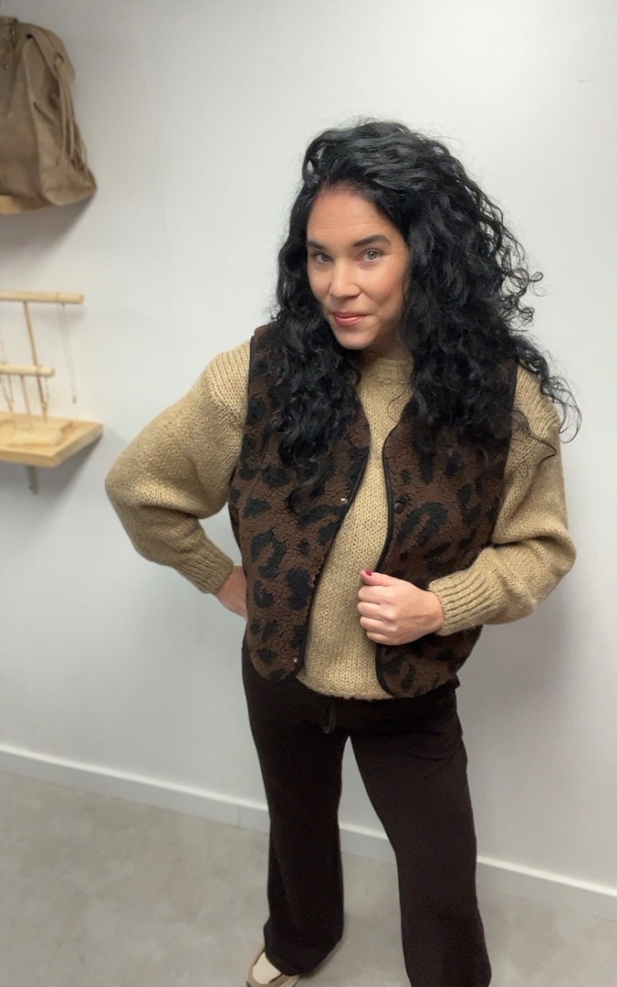 De Wauw gilet leopard donkerbruin is écht een eyecatcher!