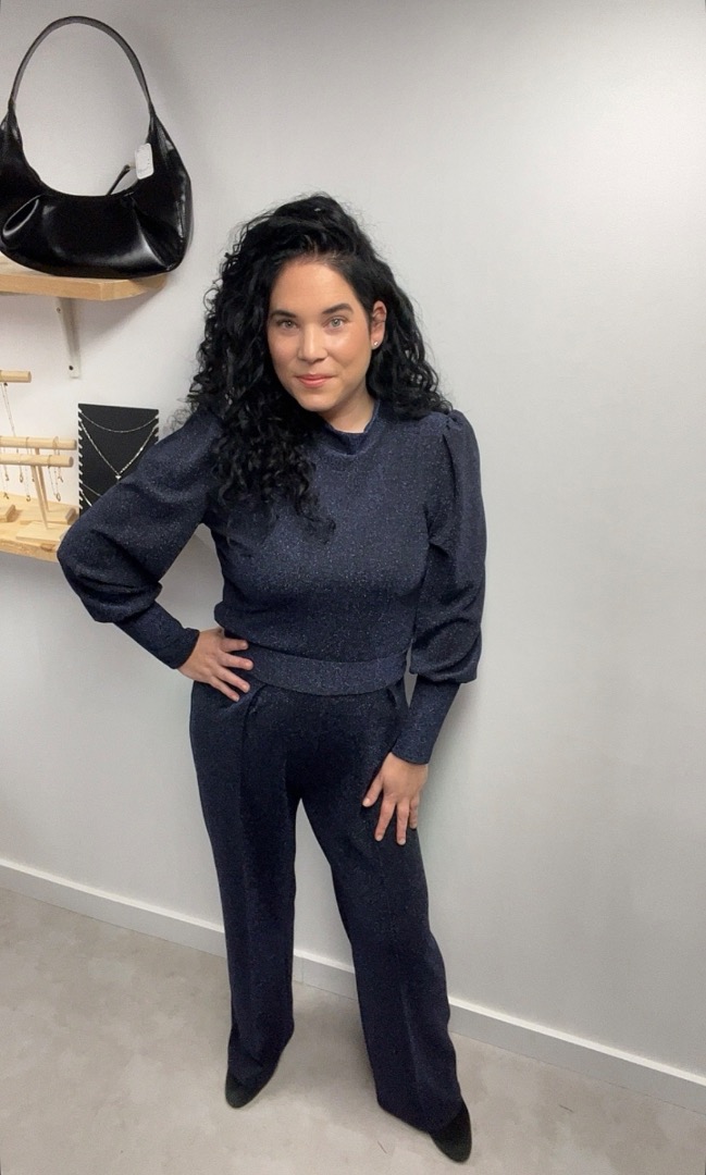Combineer de broek met de Wauw glitter top pofmouw blauw of de Wauw glitter top ballonmouw blauw voor een complete, feestelijke set die gegarandeerd opvalt.