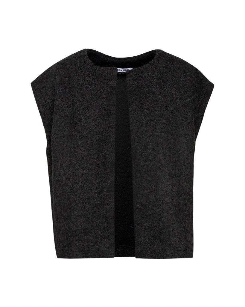 De gilet is gemaakt in een tijdloze zwarte kleur, waardoor je hem eindeloos kunt combineren, of je nu een casual jeans draagt, een nette blouse of een prachtige jurk.