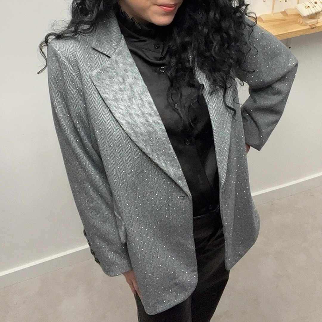 Deze prachtige glitter blazer in grijs is een echte eyecatcher.