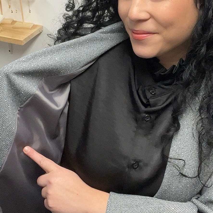 Het visgraatmotief met glitters geeft de blazer een luxe, feestelijke uitstraling.