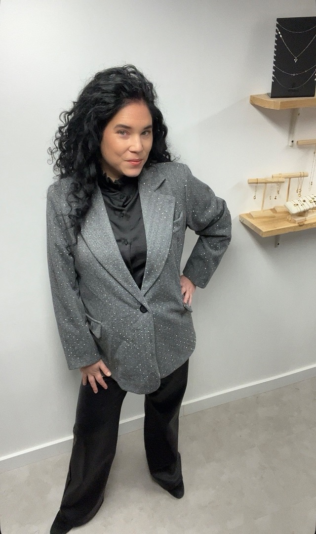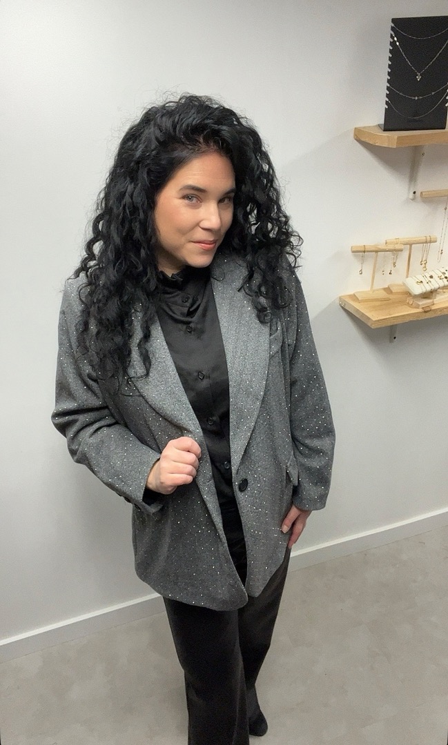 De Glitter blazer antraciet tilt elke outfit naar een hoger niveau.