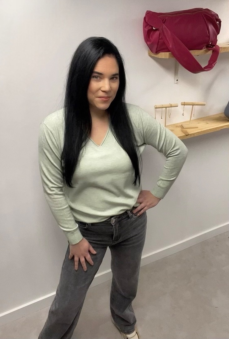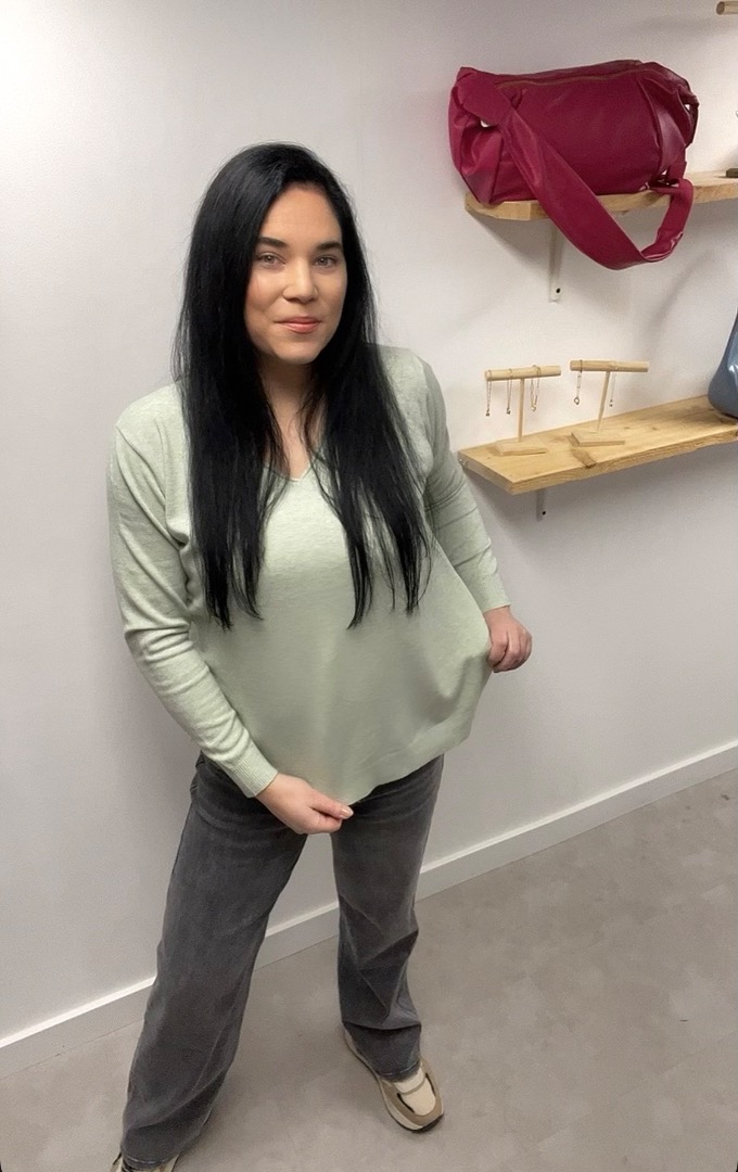De Trui licht groen mêlee v-hals is gemaakt van een zachte viscose/polyester kwaliteit die heerlijk aanvoelt op de huid.