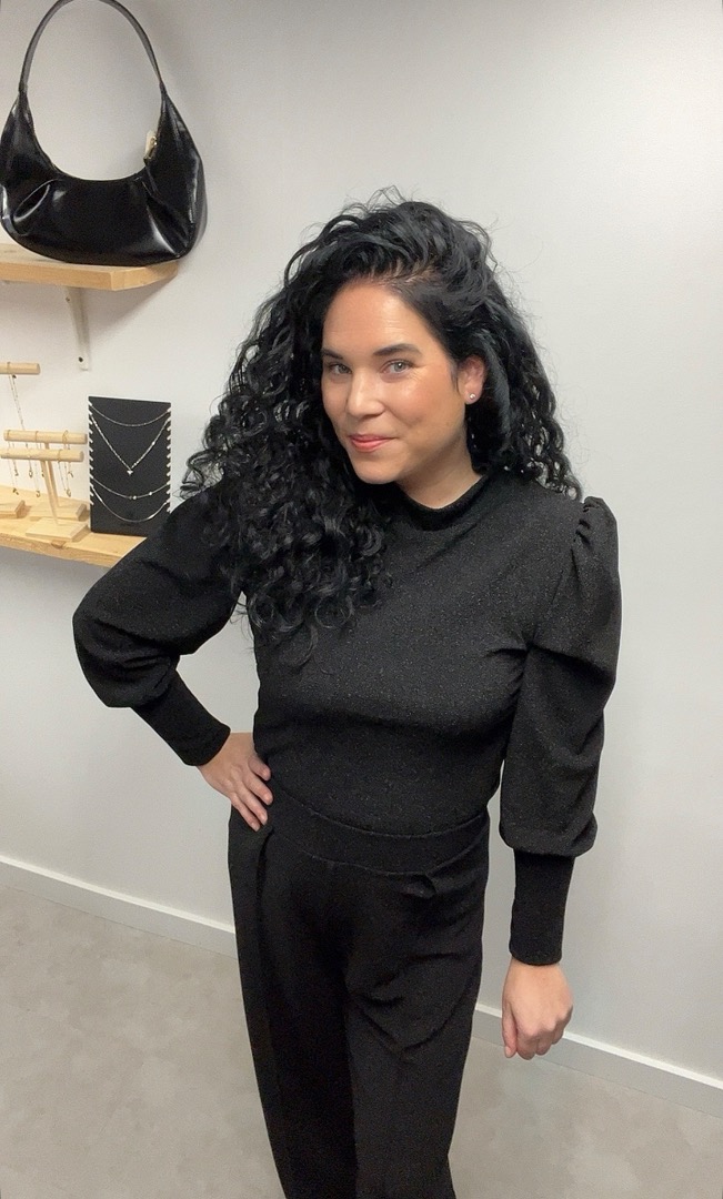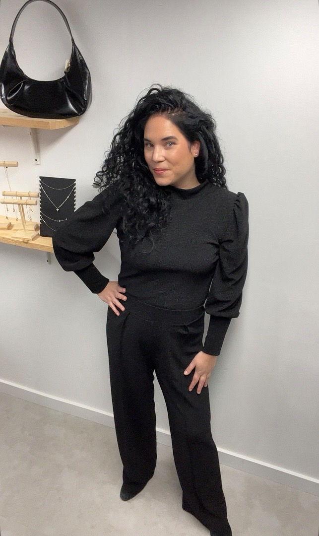 De Wauw glitter top pofmouw zwart is dé perfecte top voor de feestdagen!