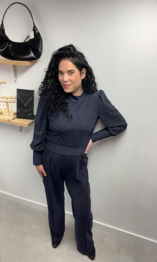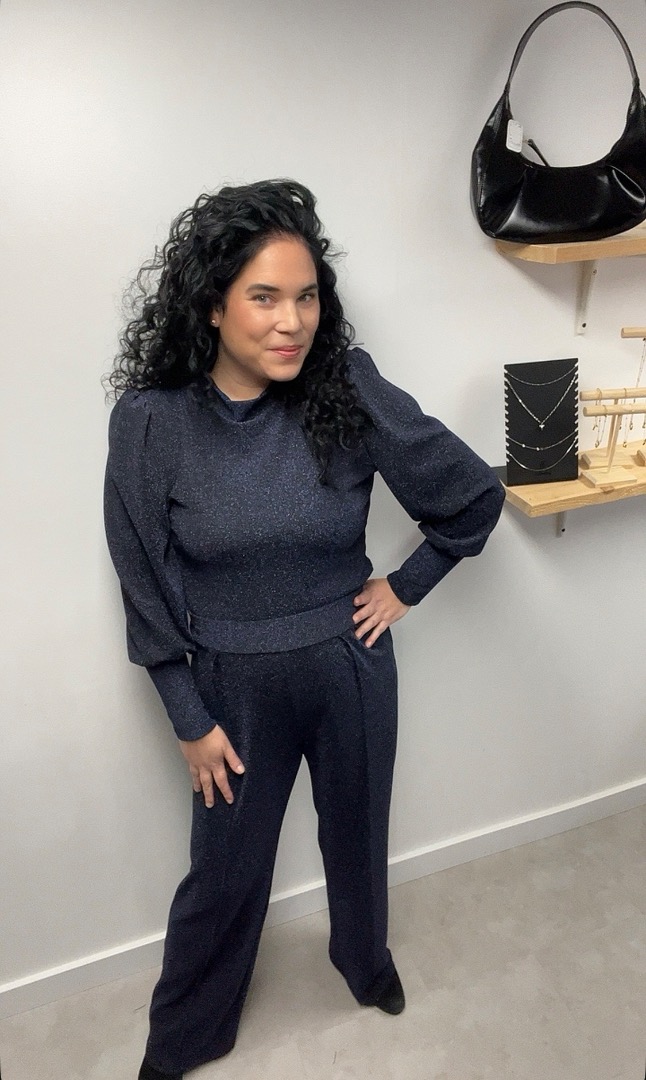 Laat je stralen tijdens de feestdagen met de Wauw glitter top pofmouw blauw!