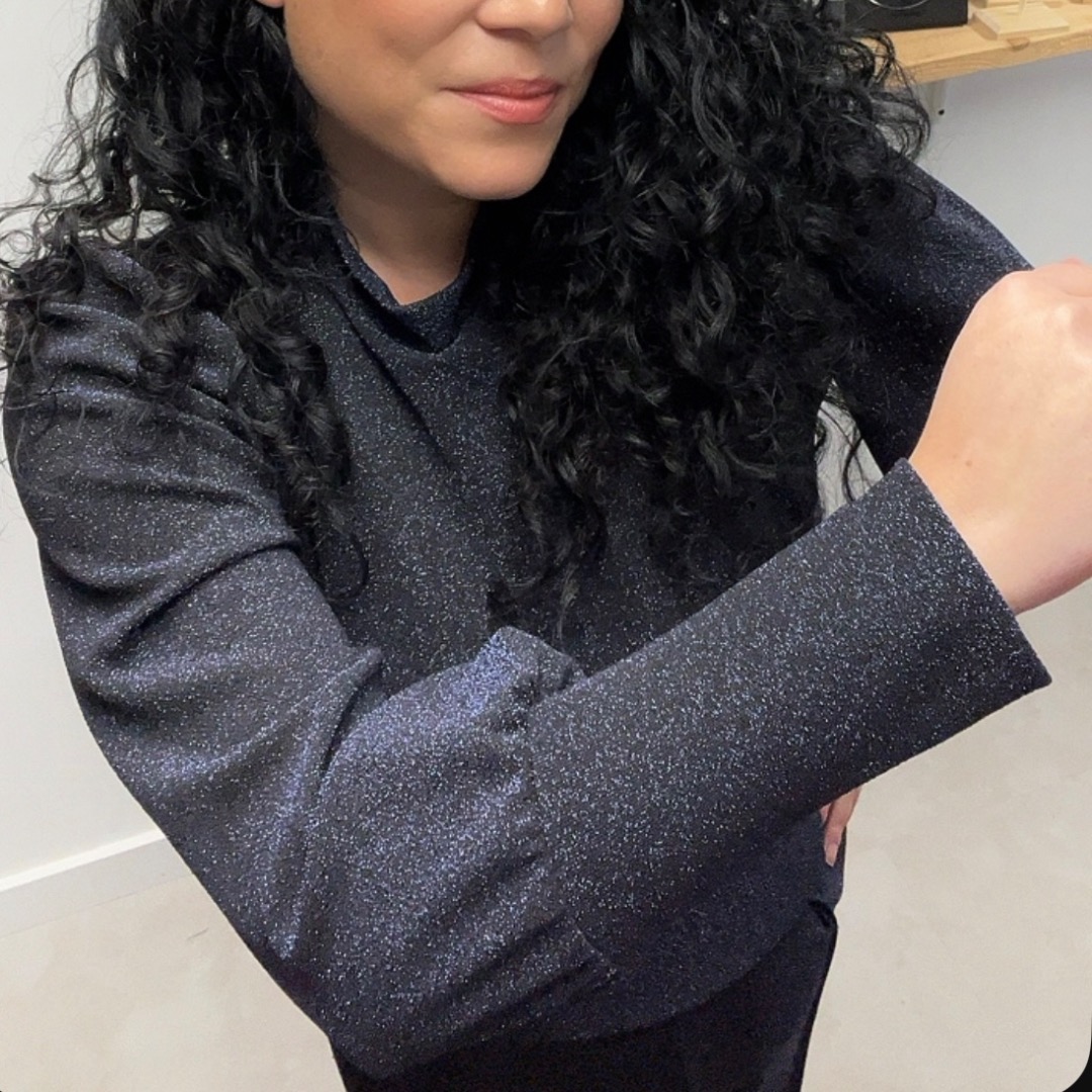 Deze top is gemaakt van glinsterende stof met een zachte binnenkant, waardoor hij supercomfortabel aanvoelt.